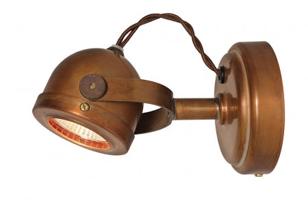 Koperen wand/plafondspot. Wordt geleverd met GU10 led lampje.