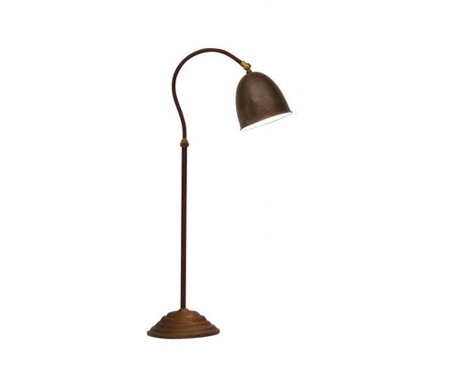 In hoogte verstelbare bureaulamp in bruin patina, inclusief koperen kap
