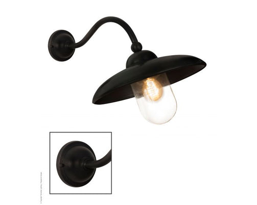 Buiten/wandlamp in donkerbruin zwarte finish, inclusief glazen stolp