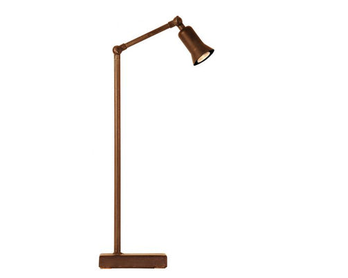 In hoogte verstelbare tafellamp in bruin patina, inclusief koperen kapje. Wordt geleverd met dimbaar GU10 led lampje.